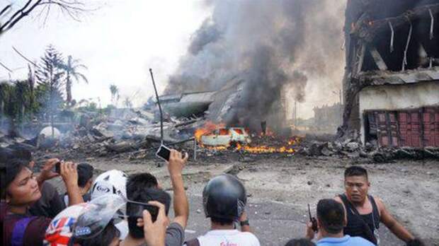 Военно-транспортный самолет американского производства разбился в городе Медан на севере Суматры (Индонезия). Ранее сообщалось, что самолет протаранил два жилых дома и автомобиль.