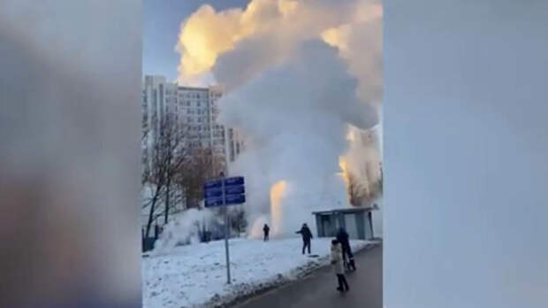 Фонтан кипятка забил из-под земли на юге Москвы. По данным РЕН ТВ, ЧП произошло на улице Теплый Стан.