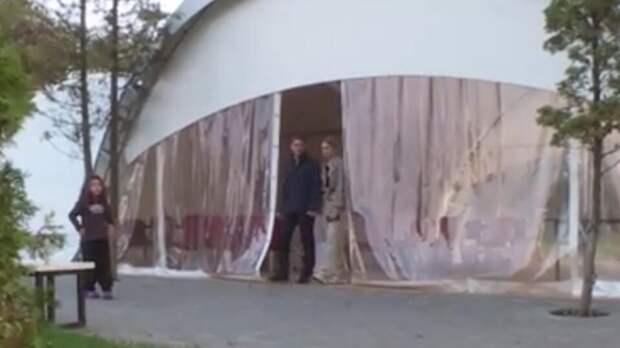 Будущую невесту Екатерину сразу же познакомили с банкетным менеджером Ксенией Романенко. Торжество планировали организовать в белом шатре на природе возле отеля. Именно здесь и должна была состояться свадьба. Но судя по обстановке, к ней здесь даже не готовились. Стулья расставлены как попало, столы грязные. Очевидно, что праздника тут не был давно.
