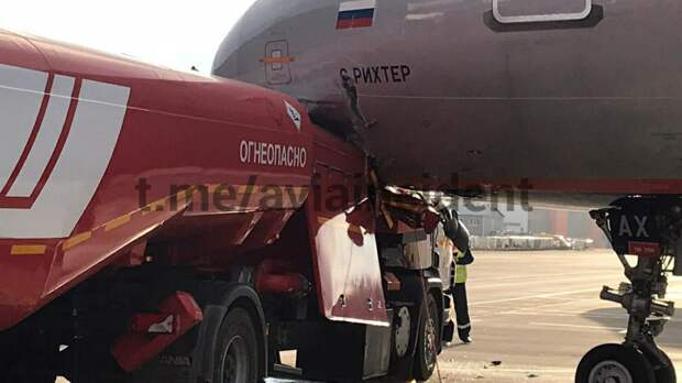 Как сообщает ТАСС со ссылкой на источник, инцидент произошел при маневрировании топливозаправщика на стоянке самолетов. Там случилось касательное столкновение с лайнером Airbus.