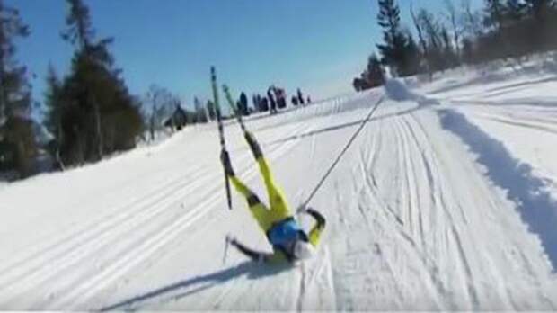 Спортсмен не увидел приближающуюся машину и столкнулся с ней. Инцидент произошел за 21,5 км до финиша. К счастью, спортсмен не получил травму. Он встал и поехал дальше. Но этот момент очень разозлил лыжника. Он даже громко выругался после падения.