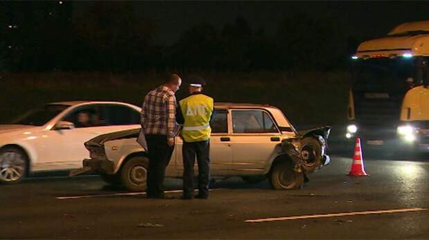 Авария случилась на 71 км МКАД по внешней стороне. Автомобиль "Рено Логан" столкнулся с машиной ВАЗ 2105.