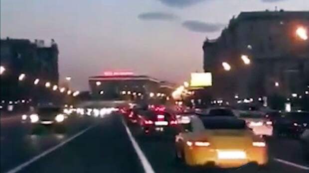 Компания молодых людей устроила гонки на Кутузовском проспекте в Москве. Видео опубликовал паблик majorka.