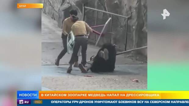 В китайском зоопарке черный медведь напал на дрессировщика прямо во время представления. Коллеги, вооружившись кто чем смог, бросились на помощь мужчине. Одна из сотрудниц пыталась отбить его с помощью баскетбольного кольца, кто-то даже прибежал с попугаем.