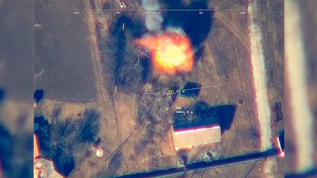 Российское Министерство обороны показало видео уничтожения грузовика с боевыми припасами украинских военных.