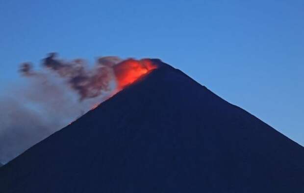 Самый высокий вулкан Евразии — Ключевская сопка — начал извергаться. Лавовый поток длиной до 500 метров стекает по склонам вулкана.