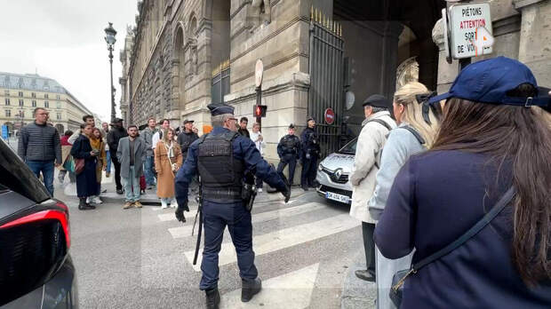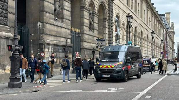 Кадры с места дерзкого ограбления в Лувре публикует РЕН ТВ.