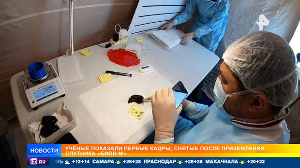 Стали известны первые результаты исследований мышиного космического экипажа, который вернулся с орбиты несколько дней назад. Ученые показали кадры, снятые сразу после приземления спутника "Бион-М". На нем были 75 грызунов, десять из них погибли. Выживших обследовали прямо в поле.