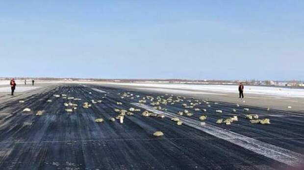 В соцсетях распространяются фотографии похожих на золото слитков, разбросанных на взлетной полосе аэропорта в Якутске. Предположительно, они выпали из АН-12, который вез груз в Красноярск на аффинажный завод.