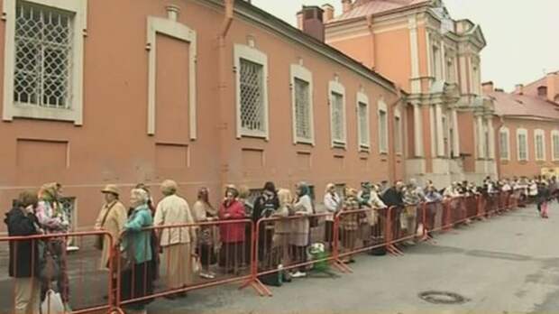 Первыми, кто приложился к мощам, были моряки, курсанты морских вузов и училищ - они сопровождали ковчег в путешествии, а также те немногие, кому посчастливилось попасть на праздничное богослужение. Для остальной двери храма открыли позже. В Свято-Троицком соборе Александро-Невской лавры, равно как и за его пределами, работают волонтеры - они раздают воду, подсказывают, где можно поесть.