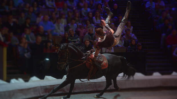 Артист-акробат во время выполнения трюка на лошади упал и сломал ногу в одном из цирков Нижнего Новгорода. Кадры с представления распространились в социальных сетях.