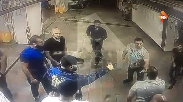 Как видно на кадрах видео, две группы мужчин "вышли поговорить". В какой-то момент один из них выходит из себя и наносит удар оппоненту.