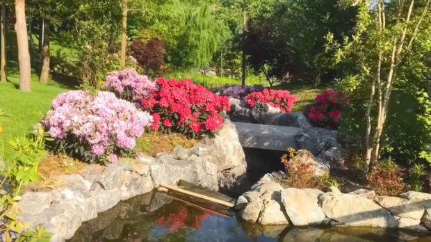 - Вслед за воротами в Японском саду появилась роскошная коллекция рододендронов и ивы.После организаторы расширили имеющийся тут пруд, придали ему более живописные очертания, высадили ирисы.