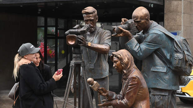 Отметим, что скульптура, созданная заслуженным художником России Владимиром Ивановым, изображает трех представителей СМИ: корреспондента с микрофоном, фоторепортера и видеооператора.
