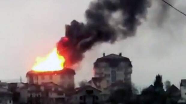 Площадь возгорания в жилом доме в Сочи, по предварительным данным, составляет 500 кв. метров. На кадрах видео, снятого очевидцами, видно, что крыша полностью охвачена огнем.