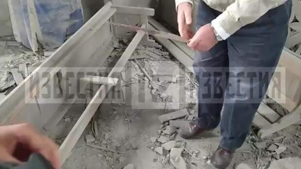 В тот момент, когда они находились в здании, вновь обрушились снаряды.Как видно на записи, сделанной корреспондентом "Известий", собор пострадал очень сильно. В куполе храма - дыра. Пол усыпан камнями, скамьи для прихожан поломаны сыпавшимися сверху конструкциями. Разбита даже дверь в храм. Сколько времени понадобится на восстановление - пока неизвестно.