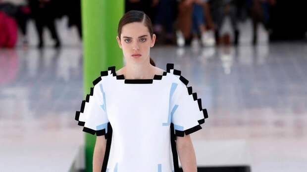 Популярной компьютерной игрой вдохновились дизайнеры бренда Loewe из Испании. Разработанная ими одежда напоминает разбитое на пиксели изображение. При этом швы практически незаметны, а сами изделия кажутся плоскими.