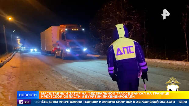 Почти трое суток тысячи грузовиков стояли на границе Иркутской обрасти и Бурятии. Из-за метели и гололеда они не могли тронуться с места, пробка растянулась почти на 100 километров.