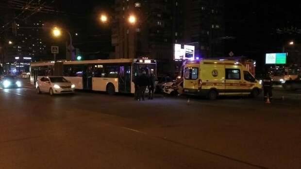 По данным РЕН ТВ, пострадали три человека из иномарки. Им оказывают помощь медики. Пассажиры автобусов не пострадали.