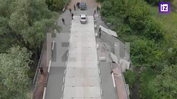 Другой мост тоже разрушили ВСУ, его восстановили в кратчайшие сроки - сейчас здесь развевается российский флаг, а движение восстановлено.