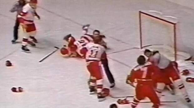 Это самая массовая и жестокая драка в истории хоккея. Ледовое побоище произошло 4 января 1987 года на чемпионате мира среди юниоров в Чехословакии.