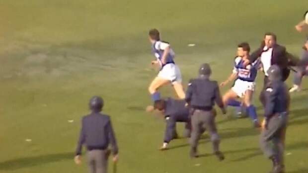 "Капитан загребского "Динамо" Звонимир Бобан, будущая легенда хорватского футбола, в ответ на то, что один из полицейских ударил загребского болельщика, сам пробил ему ногой куда-то в область груди", – говорит спортивный журналист.