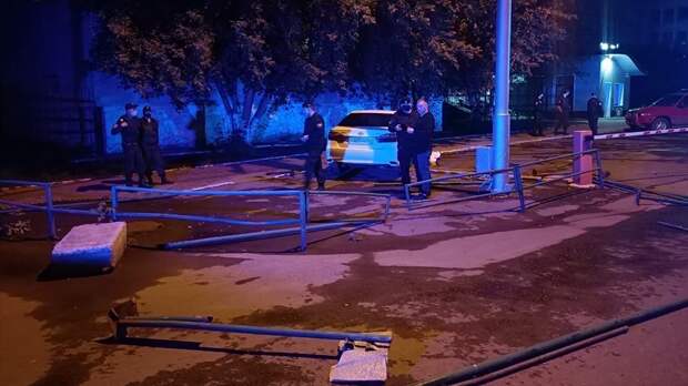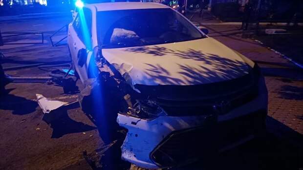 В результате аварии машина протаранила забор возле здания суда.