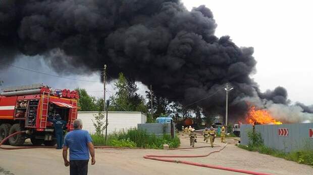Возгорание произошло на стоянке одной из компаний. Как сообщается, вместе с бензовозом загорелись две стационарные цистерны.