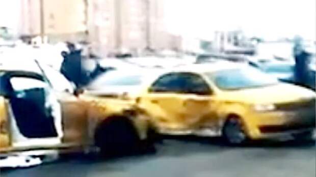 Очевидцы сняли на видео момент задержания таксиста, протаранившего авто в Одинцово. Местные СМИ называют причиной несчастную любовь.