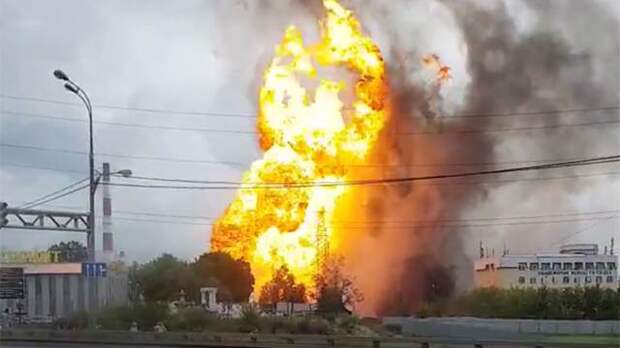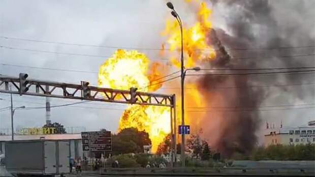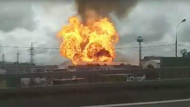 В районе ЧП наблюдается столб огня высотой 50 метров. Рядом с местом пожара расположен торговый центр "Июнь".