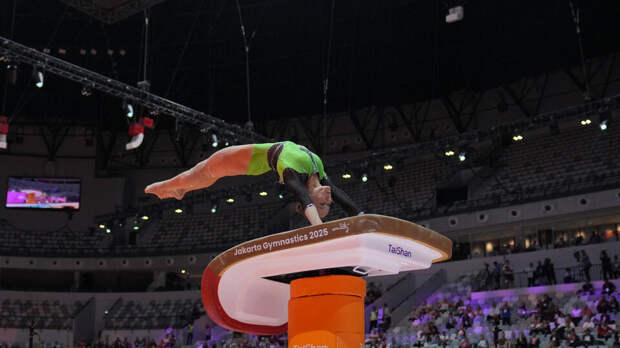 Dita Alangkara/AP/TASS Россиянка Ангелина Мельникова завоевала золото в опорном прыжке и стала трехкратной чемпионкой по спортивной гимнастике. Об этом сообщает "СЭ".