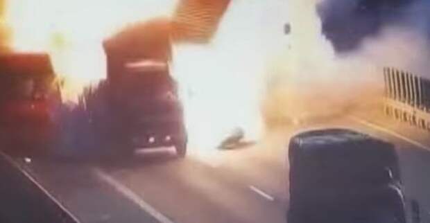 17 июля на дороге произошло столкновение двух грузовых автомобилей. Один из грузовиков зацепил топливный бак другого, в результате чего произошел мощный взрыв.