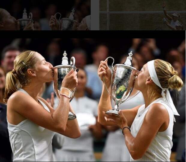 Пользователи социальных сетей продолжают радоваться победе российских теннисисток Елены Весниной и Екатерины Макаровой в парном разряде Уимблдона. Размещенные на личных страничках спортсменок фото с победным кубком собирают тысячи "лайков" и сотни восторженных комментариев.