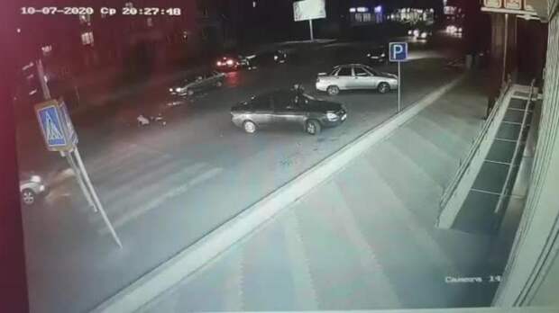 В Воронежской области водитель сбил пешехода, перебегавшего дорогу на красный свет светофора. Видео с места ДТП появилось в соцсетях.