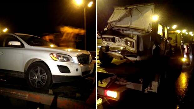 В ночь на среду на 63-м километре МКАД столкнулись три автомобиля ВАЗ и "Вольво".