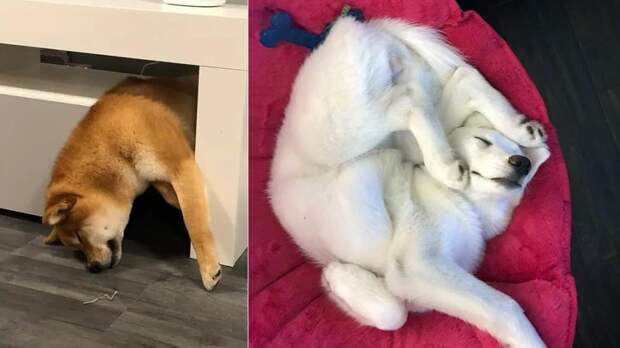 Пользователи Сети выкладывают снимки домашних любимцев под хештегом #SleepingDogChallenge. Судя по этим публикациям, лучшие друзья человека, если они устали, могут заснуть в любой позе – даже не совсем в горизонтальном положении.