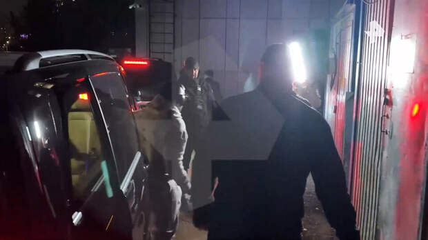 На кадрах видно, как музыкант, в сопровождении личной охраны, выходит из черного Mercedes V-Class.
