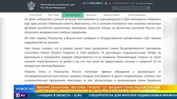 В середине апреля официальный представитель МИД РФ Мария Захарова оценила действия США в вопросе с российскими школьниками как "страшную махинацию".