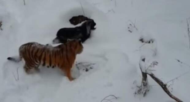 Любимцы пользователей интернета козел Тимур и тигр Амур не перестают поражать публику. В этот раз животные решили вместе переждать снегопад, накрывший Приморье.