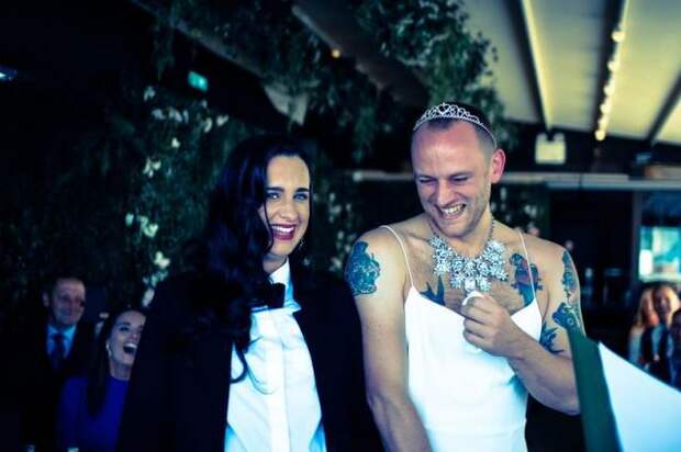 Молодожены решили развеселить своих гостей и поменяться ролями на свадьбе, сообщает Mirror. Так, жених Бобби Кук надел на церемонию бракосочетания свадебное платье, а его невеста Сиара О'Доннелл — мужской костюм. Кроме того, мужчина взял фамилию своей будущей жены.