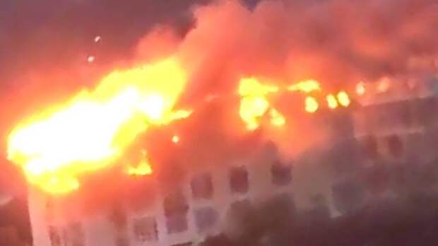 Огонь, охвативший многоэтажку в Сочи, распространяется. Как видно на записи, горят уже целый этаж и крыша.