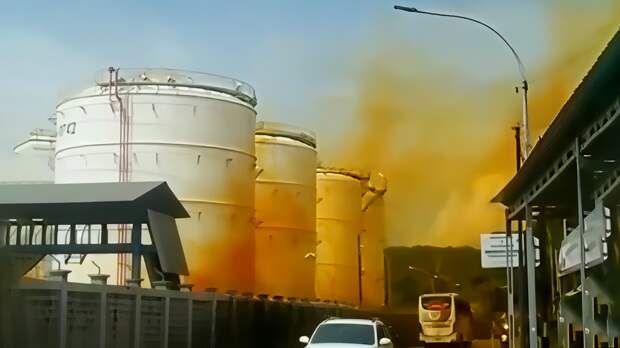 Едкий оранжевый дым окутал город Чилегон в Индонезии и продолжает стремительно распространяться. Все из-за того, что на химическом терминале произошла утечка, предположительно, азотной кислоты.