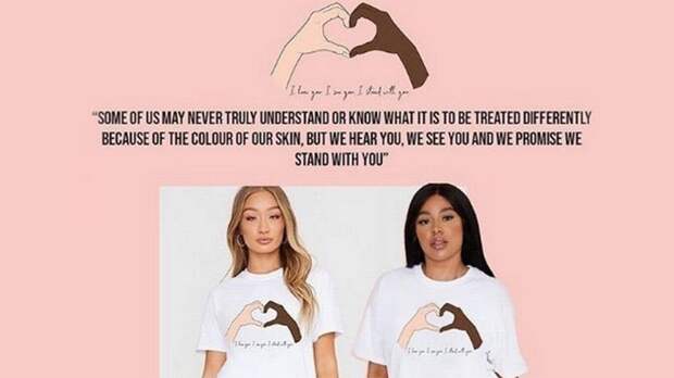 Я вижу тебя. Я стою с тобой", на которой также напечатан принт в виде сердца, изображающего солидарность белокожего и темнокожего человека. Стоимость футболки, как отмечается, составляет 10 фунтов стерлингов (порядка 860 рублей). Бренд заявил, что все вырученные средства намерен направить в мемориальный фонд имени Джорджа Флойда."Вы просто пытаетесь найти новых клиентов, используя движение Black Lives Matter!" — высказывали свое мнение пользователи в Twitter.