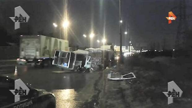 РЕН ТВ публикует видео с места аварии на МКАД, где погибла женщина.