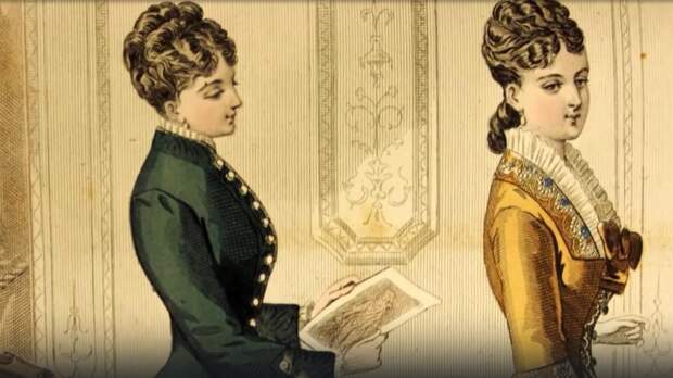 Скриншот видео "В моду вошло мраморное лицо женское, с расширенными глазами, с яркими губами и румянцем на щеках. Ну, и все это еще добавляло узкая талия и пышная юбка. Когда хрупкая женщина могла в любой момент упасть в обморок", – сообщила кандидат культурологии Киндзерская.