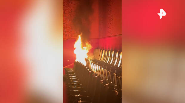 На кадрах, распространившихся в Сети, видно, как горят последние сидения в зале кинотеатра. Экран выключен, а на фоне слышны звуки фильма.