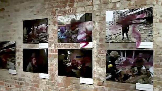 Сначала на выставку пришел мужчина в капюшоне и очках и призвал администраторов избавиться от фото украинских нацистов. Позднее туда прибыл ополченец с позывным "Испанец", который назвал происходящее беспределом.Сразу несколько активистов устроили акцию против выставки фотоснимком нацбатальона "Донбасс". Они принесли банку с красной краской, символизирующей "кровь убитых детей в Донбассе", и заявили о желании вручить ее автору фотовыставки.