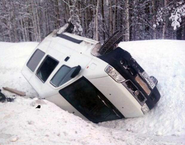 Микроавтобус вытащили из сугроба и погрузили его на эвакуатор.