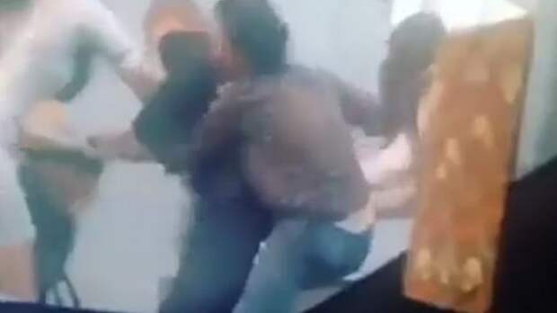 На кадрах к целующейся паре подбегает девушка и начинает избивать влюбленных.
