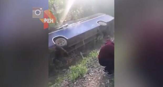 В социальных сетях опубликовано видео с места ДТП с автобусом в Приморье, который опрокинулся в кювет.